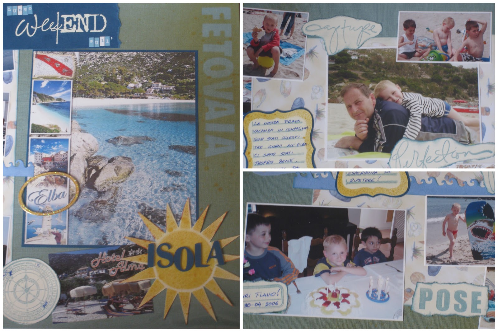 Finalmente ho scrappato le foto della ns. minivacanza sull' Isola d'Elba (per essere sinceri aveva già fatto degli album per i miei amici, per me invece niente fino ad ora). Per lo sketch mi sono ispirata a quello di Gennaio di UNLOALMESE .
